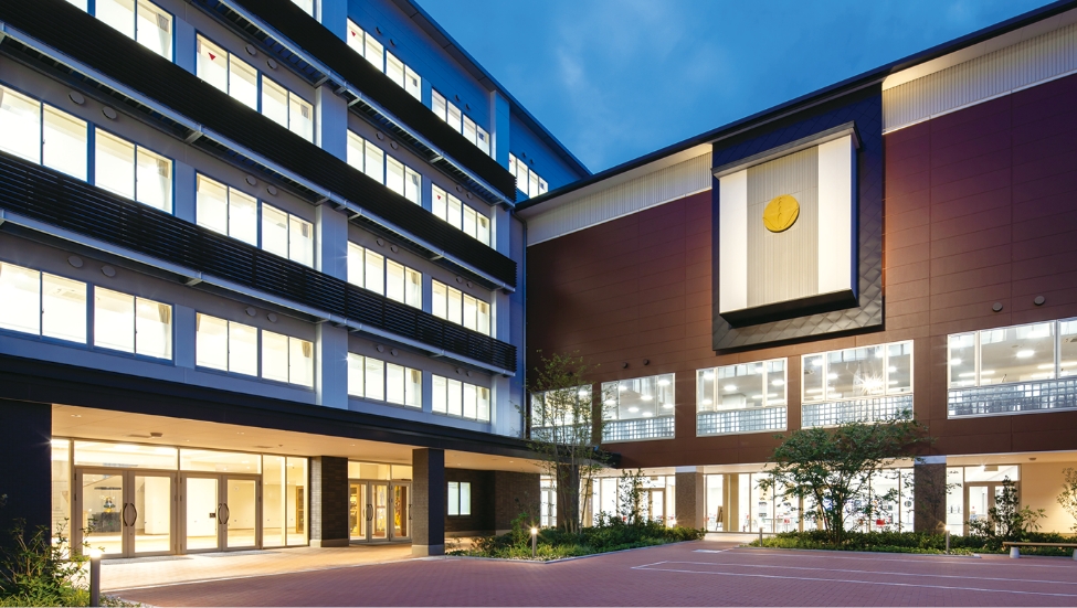 翼を広げた鳥のように広がる吹き抜けのエントランスは、思わず息を飲む荘厳さです。また、旧校舎で採用されていたアーチ型の外壁モチーフなど、新しさの中にも、変わらぬ「上宮らしさ」を継承しています。ICT環境やクラブ活動の練習場、人工芝のグラウンドなど、先進の設備・環境も充実。この門をくぐることを誇らしく感じる、一日の始まりが楽しみになる、 上宮生であることを自覚できる学び舎です。
