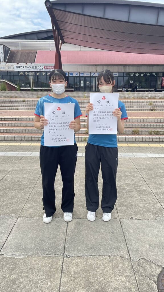また、女子ダブルスⅡ部に出場していした尾山さん、佐瀬さんペアが見事優勝しました。