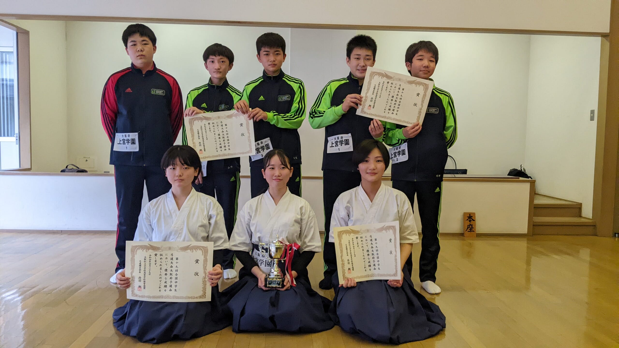 令和7年度 第22回全国中学生弓道大会大阪府予選会 女子個人優勝・男子個人優勝・女子団体優勝・男子団体優勝