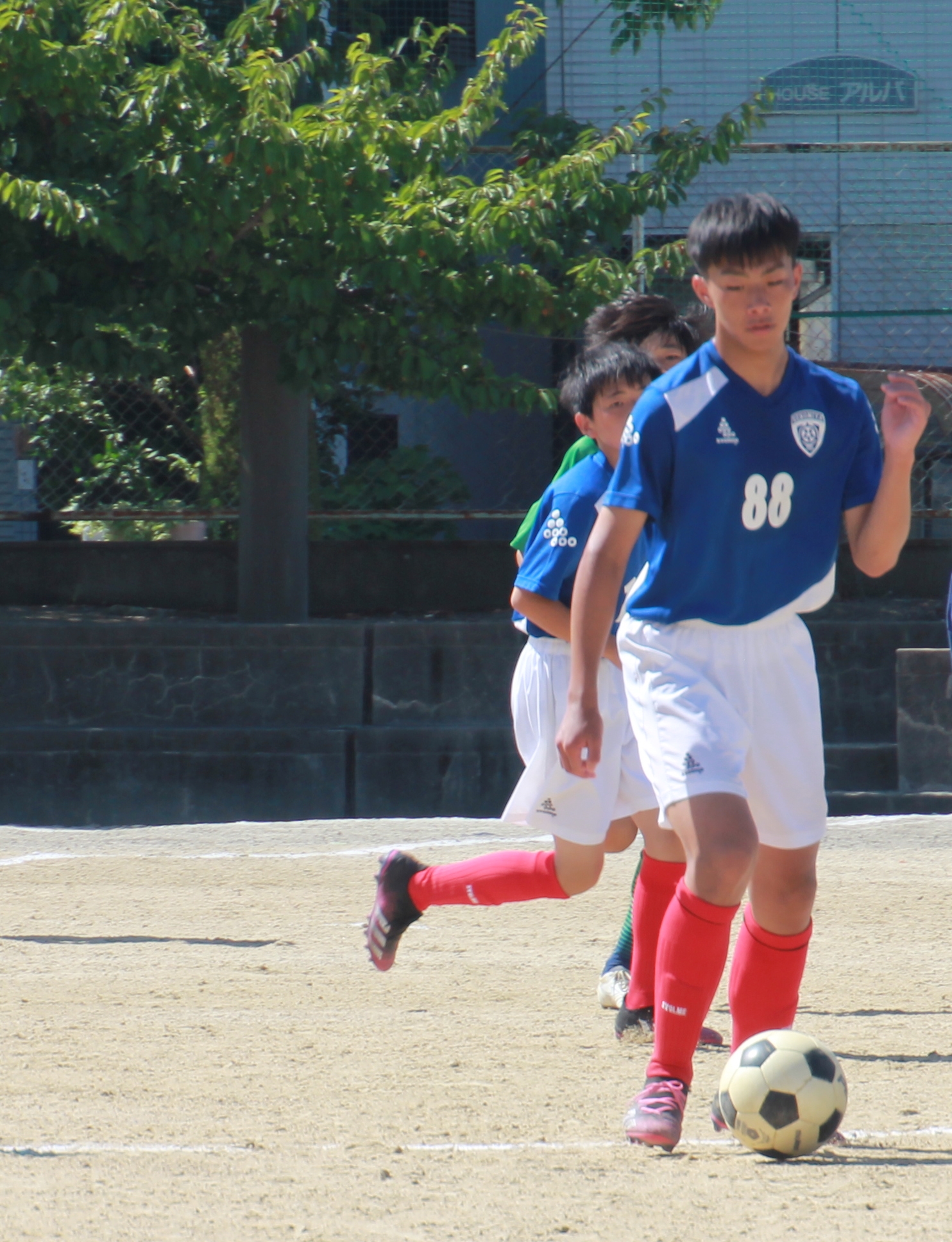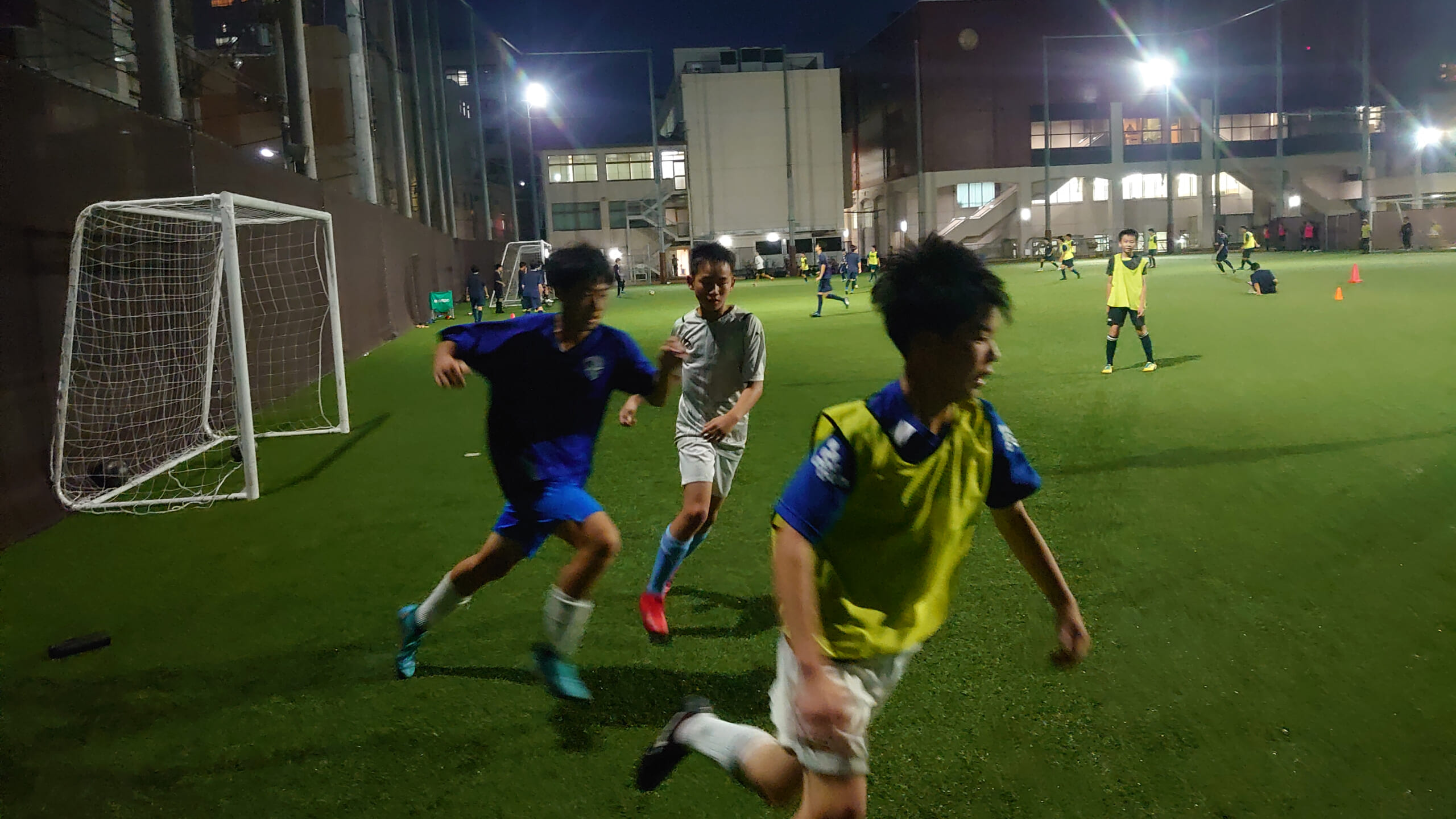 ・グランドが高校サッカー部と陸上部と共用のため,狭い。(人工芝・ナイター付き)