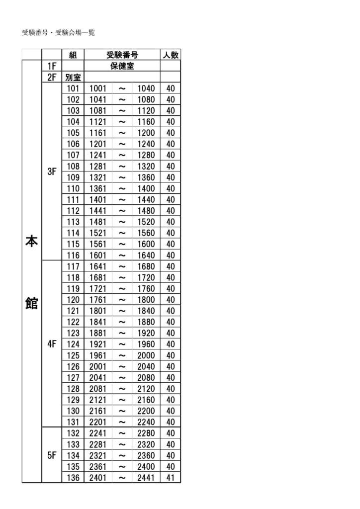 3F 受験番号 1001から1640