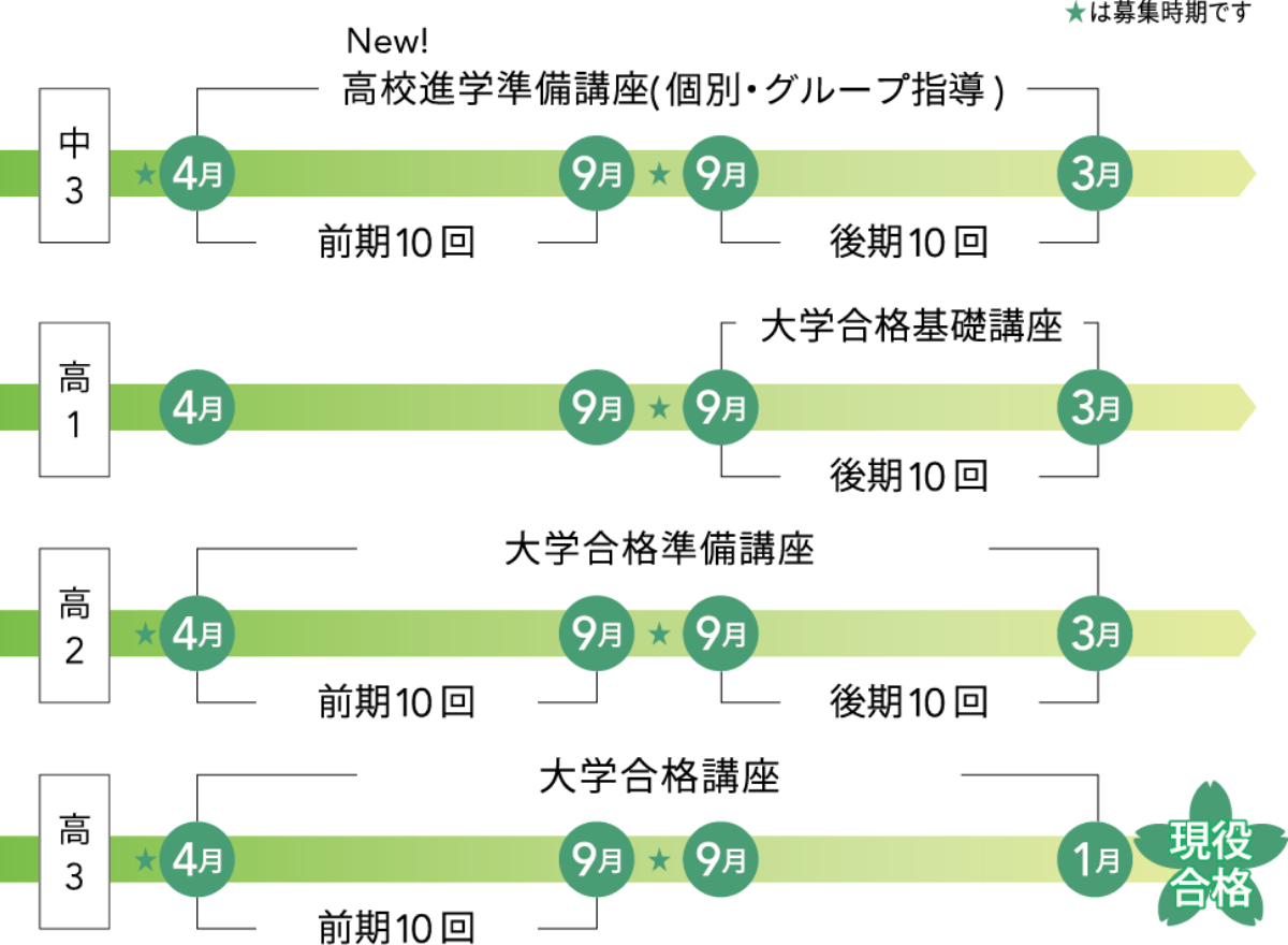 現役の塾・予備校講師の授業を、校内で受講できる「Uゼミ」。塾や予備校に通わなくても、充実した大学受験対策が可能です。中学生には、本校から国公立大学などに進学した卒業生らが指導に当たる個別・グループ指導「高校進学準備講座」も 用意されています。